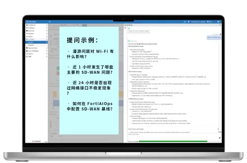 ·上下文感知响应:FortiAI 可基于实时网络遥测数据和历史趋势,快速回复相关问题。