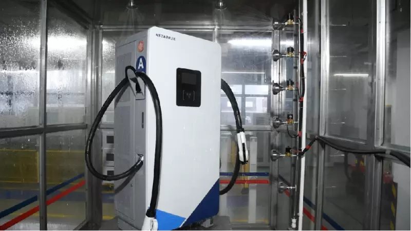 国家规定的充电桩防护等级是IP54,要求所有充电桩的防护性能至少达到这一等级。这表示能够有效抵御风沙、灰尘以及一般的雨淋,确保内部电路不受外界环境的影响,从而保障充电过程的安全性和稳定性。科士达充电桩不仅符合国家标准,同时还具备防淹(防水浸)功能,可充分应对积水、洪涝等极端情况,在充电桩被水部分或完全淹没时,能最大程度防止水侵入关键电气部件,并在检测到水浸时主动采取安全措施,防止触电风险和设备损坏。
