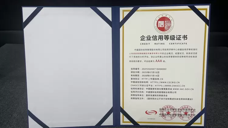 信用评级是对企业在经营管理、财务状况、市场竞争力等多个维度的全面评估。国家 AAA 级企业信用评价作为国内企业信用评级中的最高等级,代表着企业具备优秀的信用记录、稳健的财务结构、强大的盈利能力和良好的发展前景。上海诺家智慧医药集团有限公司获此殊荣,是其长期以来坚守诚信经营理念的有力见证。