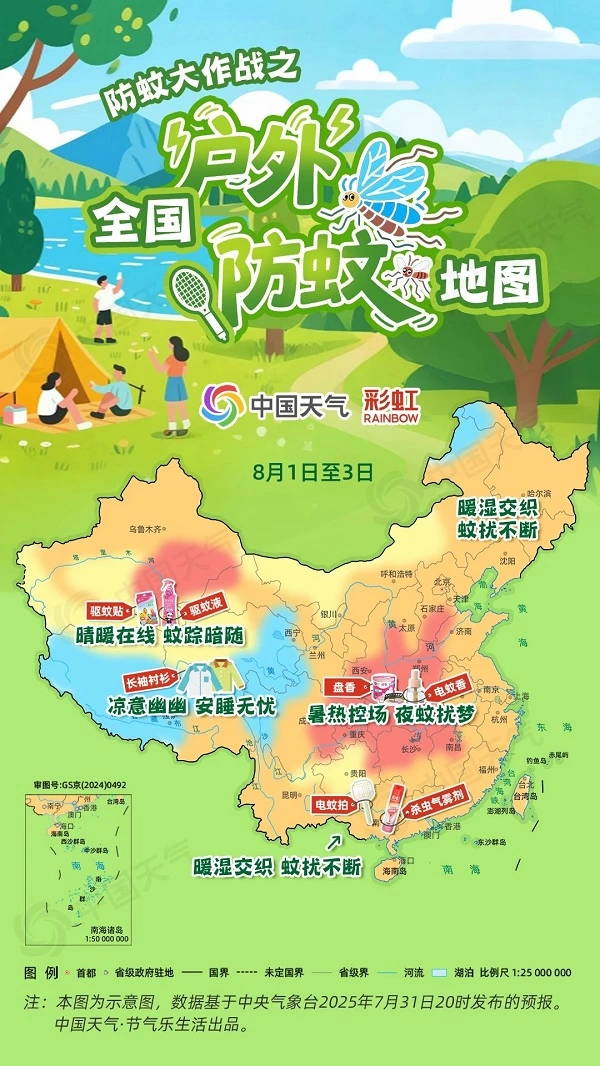 近期,广东佛山暴发基孔肯雅热疫情,广州、中山等地也均出现了基孔肯雅热病例,截至7月26日24时,广东全省累计报告病例已达4824例。据了解,这个病毒的传播途径主要是被感染的伊蚊叮咬传播,一时间如何有效防蚊成为了当下热门话题。中国天气携手彩虹集团联合推出全国户外防蚊地图,助你打赢这场防蚊大作战!