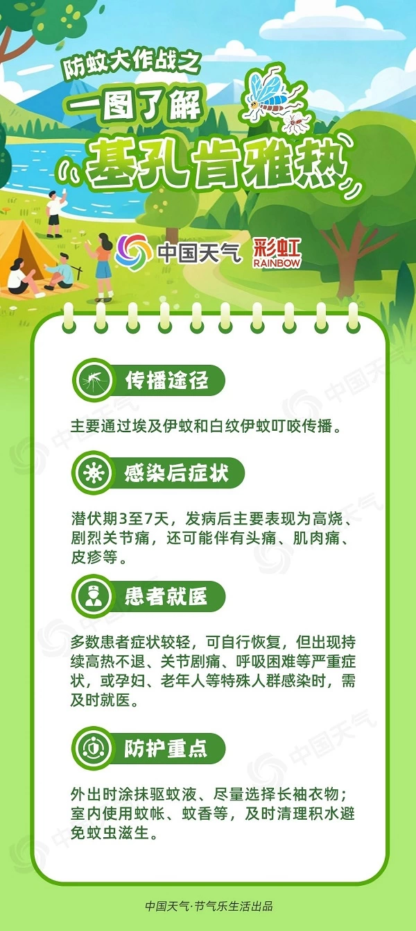2025年7月8日,广东省佛山市突发基孔肯雅热疫情,引发社会广泛关注,目前广州、中山等地均已有基孔肯雅热病例出现。据了解,基孔肯雅热是由基孔肯雅病毒引起,以发热、皮疹及关节疼痛为主要特征的急性传染病,其传播途径主要是经蚊子叮咬传播。