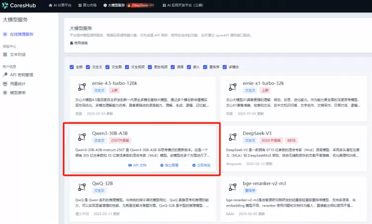青云AI算力云上新 Qwen3-30B-A3B,大模型 API 一键调用