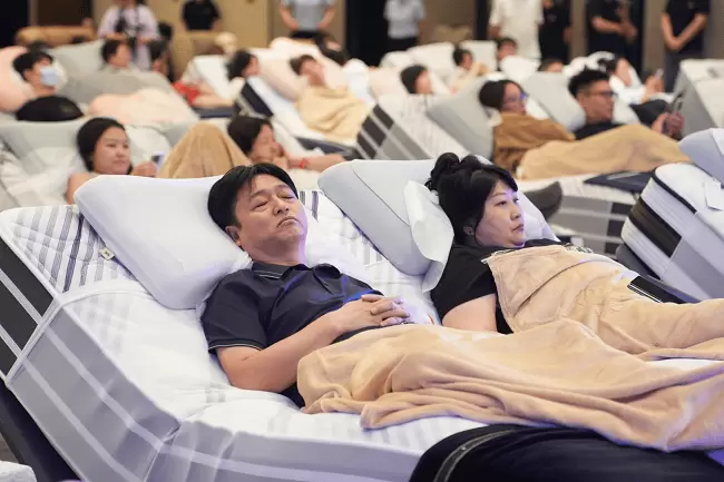 天津躺鉴会于7月26日率先启动,在张小婉到场前,已有数百名高端用户抢先体验了这场“黑科技助眠盛宴”。不少参与者表示,来这里就是想亲身体验:“睡个好觉,到底有多解乏?”