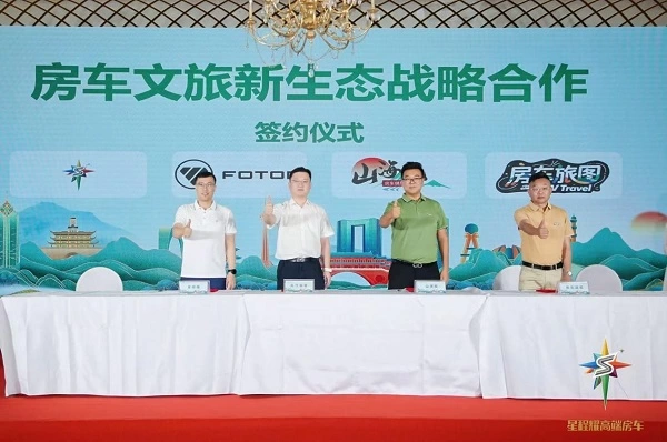 同日,由北汽福田汽车股份有限公司携手星程耀(北京)汽车科技有限公司、山海赋(集团)管理有限公司、房车旅图(北京)网络科技有限公司联合主办的房车文旅新生态发布会圆满举行。四方企业正式达成战略签约,组建产业生态联盟,共同勾勒房车文旅新业态的美好蓝图。