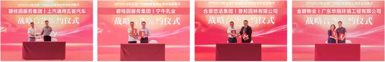 广州物博会聚焦成果转化,2024年第五届展会期间累计促进商贸合作订单额1.03亿元。展会现场,碧桂园服务集团与五菱汽车、贵州酒中酒、宁牛乳业等;合景悠活集团与普邦园林;金碧物业与华瑞环境工程、科海楼宇智能科技、晨晖清洁、圣牧乳业等都分别隆重举行了签约签约仪式,进一步助推了物业管理上下游产业的融合发展。
