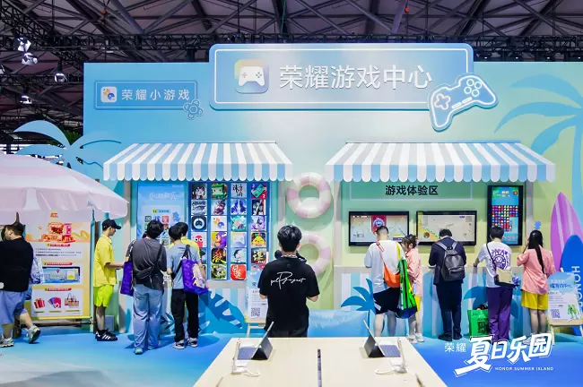 荣耀游戏中心同样也为现场的广大游戏爱好者精心准备了丰富的权益福利,陪伴玩家快速成长;接入DeepSeek大模型的游戏管家,让用户可以一站式沉浸畅玩,性能数据一目了然;还有全新上线的小游戏APP,海量小游戏即点即玩,丰富的游戏品类让玩家们尽情享受其中的乐趣。每一处细节都精准戳中年轻人的兴趣点,让科技展台变身成为充满乐趣的沉浸式体验空间。