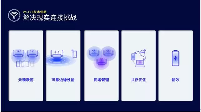 • Wi-Fi 8引入了诸多突破性创新,如无缝漫游、边缘性能优化和多接入点协调等,旨在为企业、家庭以及大型场所中的关键业务型应用提供媲美有线网络的可靠性。