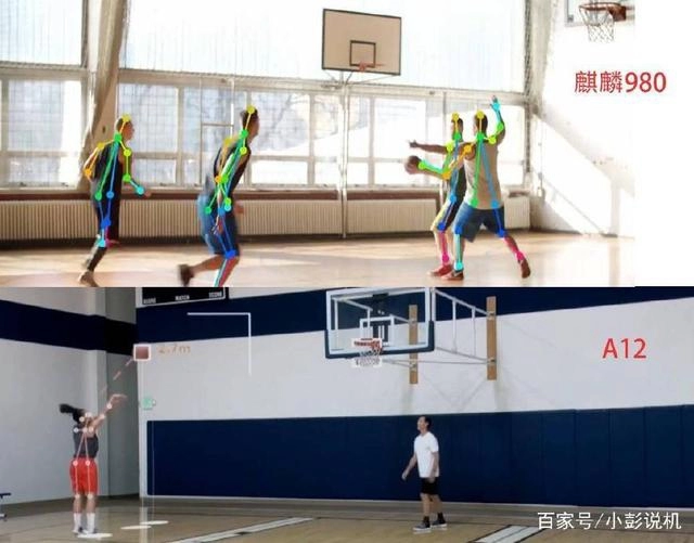从上面的小视频中,能够看出麒麟980精准识别人体姿态的能力,这是麒麟980 AI实力的直观展现。在篮球场景中,麒麟980能够在人物快速动作的场景下准确识别骨骼线条,即使是在具有肢体叠加的复杂状态下,AI也能精准识别人体姿势线条。
