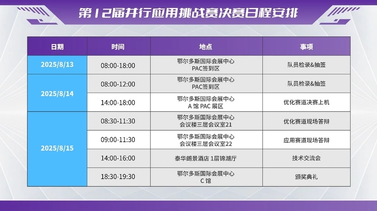 2025年7月24日,第十二届并行应用挑战赛(Parallel Application Challenge,简称PAC2025)初赛评审圆满落幕。经过专家严格评选,来自清华大学、北京航空航天大学等高校的应用赛道12支队伍、优化赛道16支队伍成功晋级,将于8月齐聚鄂尔多斯HPC大会现场,展开最终角逐。