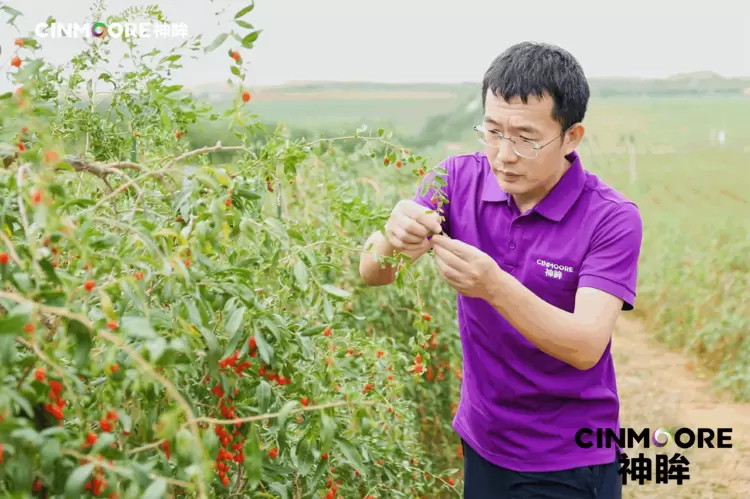 在中宁玺赞枸杞庄园,杨作兴博士体验鲜枸杞的采摘及加工过程,交流神眸AI智能摄像机在生态助农中的技术能力,包括「种植监测」「直播采摘」等,神眸PT2无电线无网费,通过太阳能供电实现72小时农田巡检,AI算法实时对话现场人员,黑光技术把夜景拍成白昼的效果,全景呈现枸杞从田间到舌尖全流程。「云端溯源」实现消费者扫码即可观看枸杞生长全周期视频,增强中卫枸杞品牌信任透明生态链,