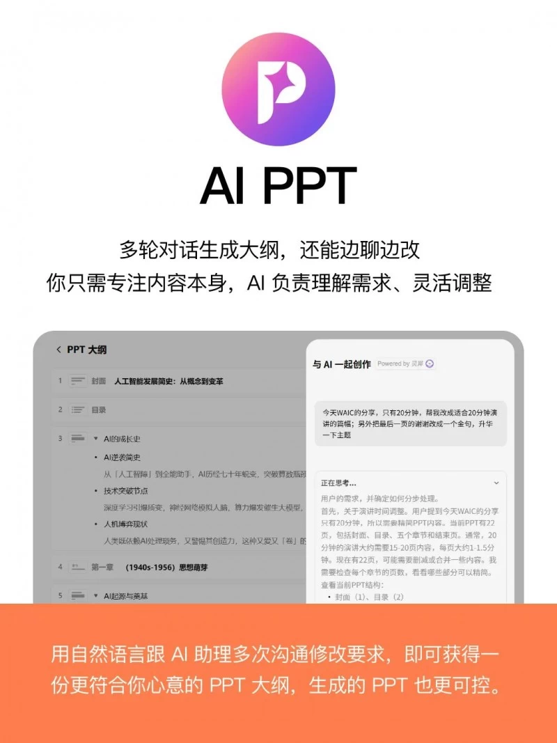 “灵犀语音助手”可以围绕指定文档,快速抓取内容,给出“仔细思考”后的回答。聊天结束后,助手还可以自动总结本次聊天内容,为用户生成一份可编辑的文档,方便后续回顾。