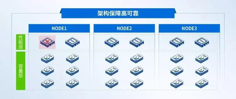 SSD与HDD完全解耦,SSD故障仅影响自身数据副本,HDD层数据完整可用且无需重建,彻底规避传统方案中SSD故障造成的全磁盘组数据失效风险,以及SSD-HDD交叉故障导致的数据风险。