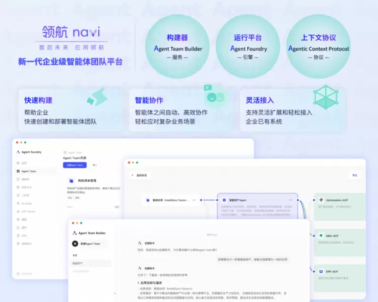 智用开物的产品体系分为平台型产品和场景应用产品两类。其中,主打的新一代企业级智能体团队平台“领航navi”,其基于自主研发并经过多行业验证的AI Agent Foundry技术底座升级,通过“服务+引擎+协议”三大核心模块,为企业提供智能体团队的快速构建、自动化编排与全生命周期管理能力。目前已在政务、制造、文旅、电商、材料应用等行业领域沉淀诸多成功应用场景案例,形成工业设计、文档审核、智能问数等标准化应用产品,且案例及应用数量正呈爆发式增长态势,持续赋能产业变革,让AI之力成为企业高质量发展的核心引擎。