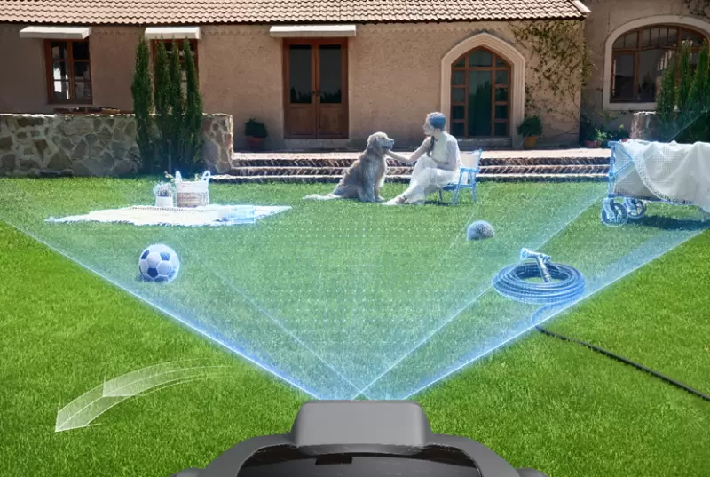 ViAX系列配备了UltraEyes™ 1.0 AI双重视觉融合系统,这是一套融合了两个超高清摄像头与AI智能算法的三维视觉感知系统,实现50m探测距离,120°宽度x70°高度视觉范围。它可以精准识别草坪与非草坪区域,智能识别庭院中的人物、动物与物品,AI双目视觉的精准度还确保割草机能灵活穿梭于最窄60cm的通道。通过先进的视觉处理和智能决策,实现了精确感知与定位,真正洞悉您的三维庭院环境,让割草过程既智能又安全。
