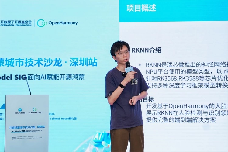 8月9日,“开源鸿蒙城市技术沙龙·深圳站”暨“AI Model SIG线下分享会”(以下简称“活动”)在深圳成功举办。本次活动聚焦AI技术与开源鸿蒙的融合实践,汇聚了来自开源鸿蒙社区、开鸿智谷、视美泰、佳都科技、瑞莎等多位技术专家,围绕芯片平台适配、AI框架移植、模型推理部署等维度,分享了开源鸿蒙AI Model SIG的最新进展与实践成果,为现场嘉宾带来了一场干货满满的深度技术交流盛宴。