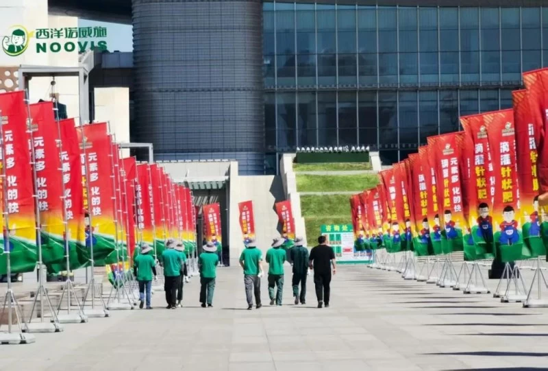 步入会展中心,针状肥无疑是本届农博会人气最旺的视觉风暴。随处可见公司的广告牌、产品横幅、注水旗等,吸引了大量参观者的注意的同时,也彰显了西洋诺威施在本届展会的重要地位和品牌影响力。
