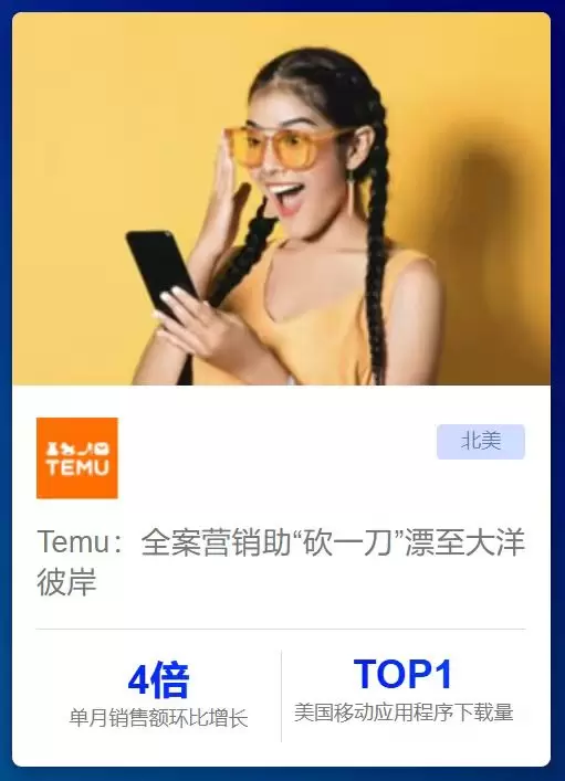 2022年9月,Temu正式登陆北美市场。Temu源自“Team Up,Price Down”的口号,与“拼多多”字面逻辑相似,即组团买,更便宜。