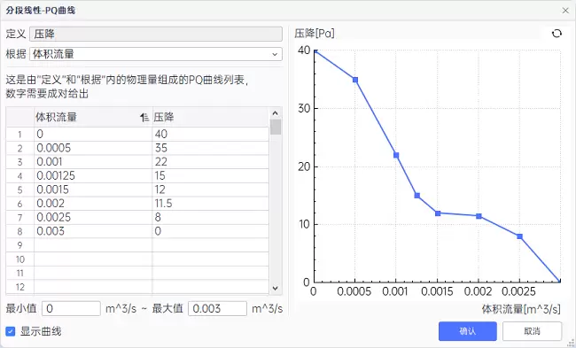 支持使用PQ曲线对风扇进行模拟,包括进气风扇、排气风扇、内部风扇三种边界类型。