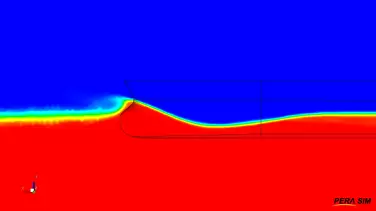 稳态VOF模型适用于稳态相间界面的求解问题,例如船在匀速运动时的兴波阻力计算。相比瞬态VOF,能够极大提升稳态问题的计算速度。该模型支持相间作用力,如表面张力。支持相间质量传递,提供空化机理模型。