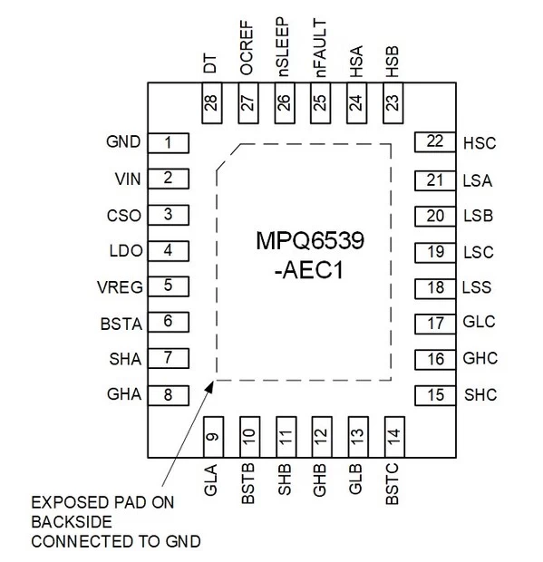 MPS芯源系统(NASDAQ代码:MPWR)近日发布的新产品MPQ6539-AEC1,是一款专为三相无刷直流(BLDC)电机驱动器而设计的栅极驱动器IC,其输入电压高达80V,可驱动由六个N沟道功率MOSFET组成的三个半桥的车规级栅极驱动器。MPQ6539-AEC1适用于汽车泵、电动升降尾门、电动天窗、电动座椅调节等汽车车身电机控制应用。