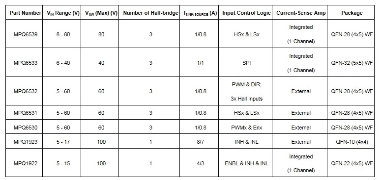 针对汽车无刷直流电机(BLDC)栅极驱动器应用,MPS能够提供多款解决方案以满足不同的规格需求,助力实现从汽车12V系统供电电池到汽车48V系统过渡。