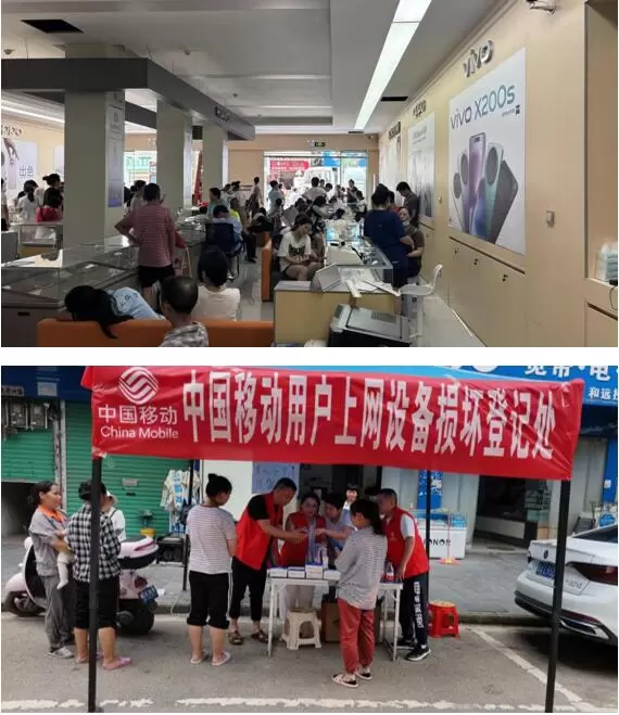 在抢修通信的同时,中国移动始终将群众的需求放在首位,为群众提供充电上网、免催免停、紧急开机、赠送流量等服务,方便群众在紧急情况下与家人取得联系。一位外地游客在听说移动公司这边可以充电打电话后,也赶过来给家里报了平安,让家人不用担心。不仅如此,为了减轻群众的灾后重建压力,中国移动还组织网络修复专项攻坚团队,一边挨家挨户上门询问沿街商铺、酒店的受灾情况,一边摆摊设点登记群众需求,免费更换被洪水泡坏的摄像头、路由器等设备,与受灾群众携手共渡难关,重建美好家园。