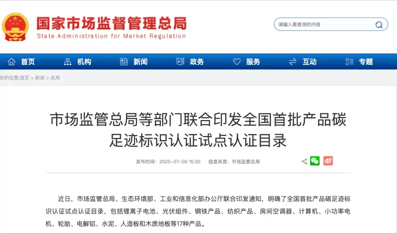 党的二十届三中全会《决定》强调“构建碳排放统计核算体系、产品碳标识认证制度、产品碳足迹管理体系”。市场监管总局等四部门联合印发的《关于公布产品碳足迹标识认证试点名单的通知》《产品碳足迹标识认证试点认证目录(第一批)》明确遴选广东省佛山市开展空调产品碳足迹标识认证试点工作,并将房间空调器等17种产品纳入全国首批认证试点目录范围。