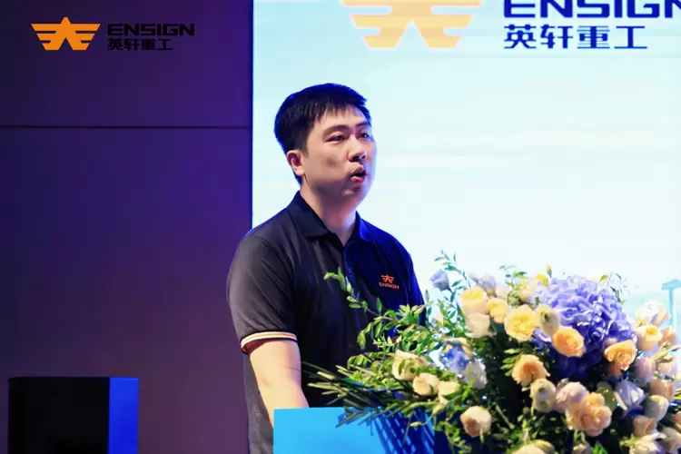 在“智拓新境·绿绘未来”的主题下,两位经销商代表的分享,生动诠释了英轩的实力。北京瑞英隆机械设备有限公司总经理王义海凭借十年深耕的经历,阐述了厂商协同的共赢之道:“从国三到国四的技术迭代,从燃油到纯电、混动的产品布局,英轩始终以硬核品质和前瞻技术为我们提供底气。”