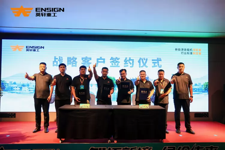 发布会尾声举行了庄重的签约仪式。在全场见证下,两家客户代表与集团领导共同签署战略合作协议。此次签约,是“技术赋能”与“需求升级”的双向奔赴,是“政策导向”与“企业担当”的同频共振!也正是这份协议的签署,标志着英轩“产业创新+客户价值最大化”的理念再结硕果。英轩重工也必将以更硬核的产品、全周期的服务,助力客户价值跃升!