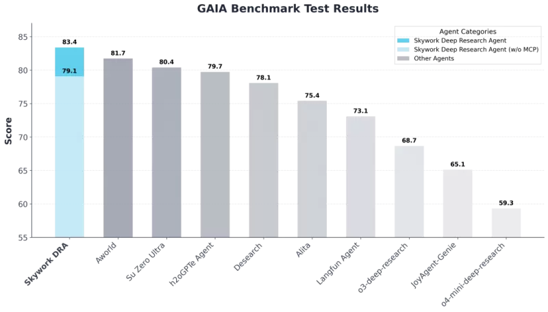另一方面,Skywork Deep Research Agent在GAIA Test基准上同样取得了SOTA表现,充分验证了其在复杂任务中的综合实力。