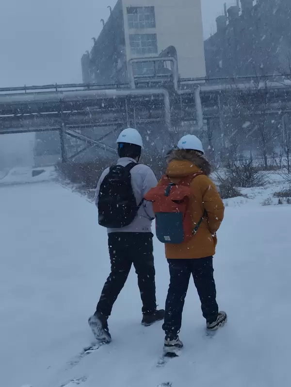 图注:风雪中,全应科技蒙维项目团队成员结束厂区现场调试,安全帽与背影,藏着为热电智能升级奔走的执着