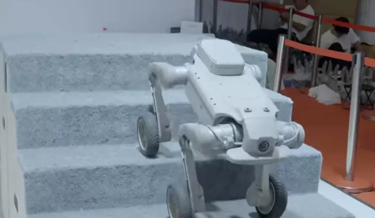 除了足式版本,“钢镚”还提供了轮式版本的ZSL-1W,兼具高速巡航与越障能力,适用于安防、巡检、导盲等多场景智能移动任务;轮足的噪音仅55分贝,奔跑速度5m/s,续航9km,越障高度可达65cm,具备低噪音、长续航、强通过等优势,为行业级应用提供更优解决方案。现场还亮相展出了钢镚 ZSL-1W的“导盲版”,彰显了智身科技秉持的“用科技重塑安全感”场景应用理念。