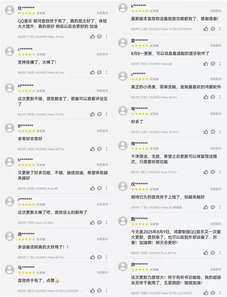 近日,鸿蒙版QQ音乐迎来重大版本更新,此次升级不仅上线了用户期待已久的“银河音效”,支持碰一碰分享歌曲,更通过深度融合鸿蒙系统的全场景互联能力与丰富组件,实现了投播、跨端接续等新玩法,为用户打造了前所未有的智慧音乐体验。此版本在鸿蒙应用市场评论区也收获了大量的用户好评,网友纷纷表示“这次更新太棒了吧”、“体验大大提升”、“五星鼓励”!