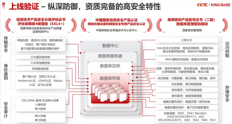 构建数字化、智能化技术体系的前提必须保障数据安全。扎根数据库领域几十载,电科金仓凭借丰富的数据库理论知识、历经千行百业的成功实践经验、持续的开拓创新,不仅具备完善的安全资质,还构建了纵深防御的高技术性安全保障机制。