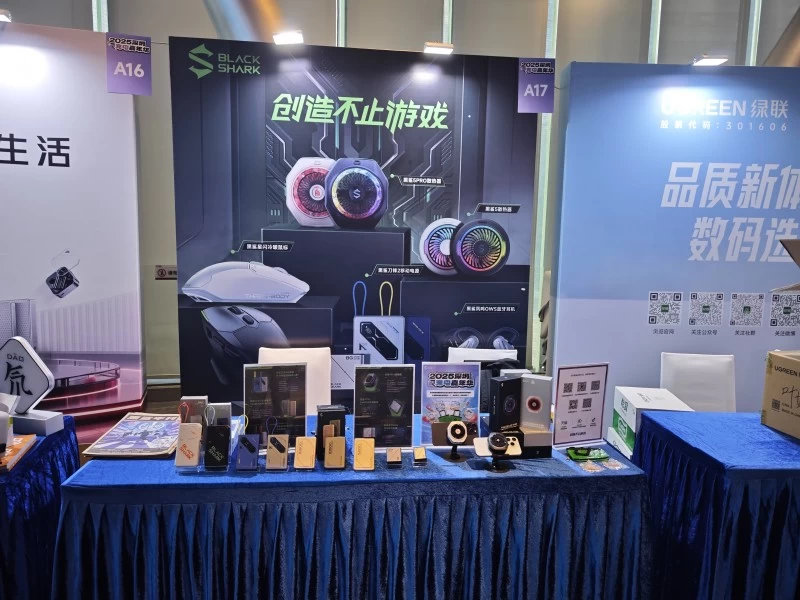活动现场,全球充电品类知名品牌商绿联、倍思、图拉斯等纷纷携新品亮相。黑鲨品牌凭借其强大的产品矩阵,尤其是充电宝系列,成为全场焦点。