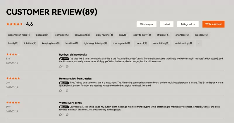 同时,借助SHOPLINE“商品评价”插件,将商品使用评价直观呈现在商品详情页,按清晰的标签分类,呈现优质评价。