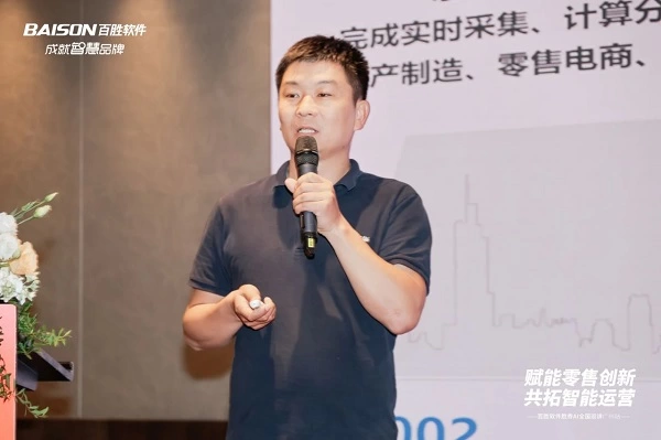 百胜软件产品专家九里明分享了《效能为王,助力品牌打造移动智能终端》。他聚焦终端效能,探讨如何利用移动智能应用满足升级的运营需求,赋能一线员工,提升终端效率。百胜软件的胜券POS产品旨在解决零售企业人力成本高、获客难等挑战。其定位为移动综合服务应用,升级传统POS终端,覆盖端到端商品流通,实现仓储、门店管理高效准确,提供多维度数据分析助力决策,还可配备智能导购助手赋能导购。产品支持多元硬件集成,有诸多客户案例,亮点包括一体化、移动便捷等,能提升效率、降低成本,未来将扩展更多可能。