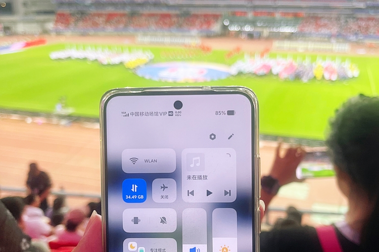 “刚拍的进球视频,发朋友圈两三秒就上传完了,十分流畅!”现场球迷李先生举着手机展示其正在体验的5G-A网络,屏幕左上角“中国移动场馆VIP”专属标识格外醒目。湖北移动武汉分公司相关负责人介绍,“这是为赛事定制的专属服务,目前正在测试阶段,正式上线后,订购场馆专属包的用户进入场馆后,手机将自动触发‘身份识别+网络感知’双显标,让球迷在享受极速网络的同时,获得专属身份认同。”