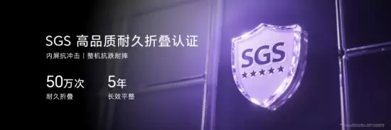 在可靠性方面,荣耀 Magic V Flip2 的全材质铰链全面升级,折痕更浅,更耐用,即使长久使用也无惧折痕;内屏采用坚韧的 UTG 玻璃材质,经过 35 万次折叠使用后,折痕小于 50μm,即使使用 5 年,屏幕依然平整无痕,通过了长效平整 SGS 高品质耐久认证。