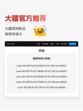 综上所述,雷克沙 Professional SILVER PLUS microSD 存储卡凭借高速读写性能、多样容量选择、良好兼容性、可靠防护功能以及实用的数据恢复软件,成为大疆 Osmo 360 用户存储的不二之选。当二者强强联合,用户使用大疆 Osmo 360 创作时,拍摄体验将更加流畅高效,也更有机会创作出令人赞叹的优秀作品。