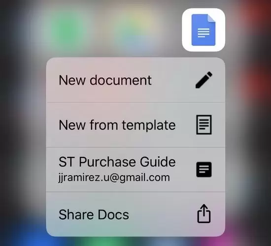 Google Docs有3D Touch菜单