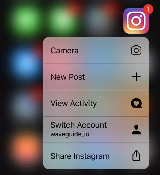 Instagram的3D Touch快捷菜单