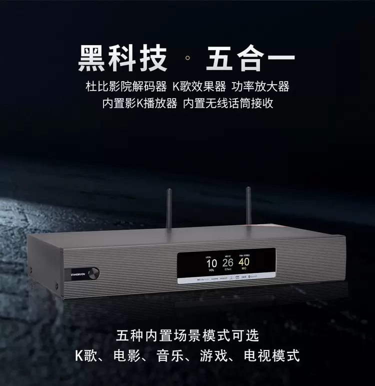 DSP智能音效处理内核:内置专业级DSP芯片,搭载多重核心K歌算法。
