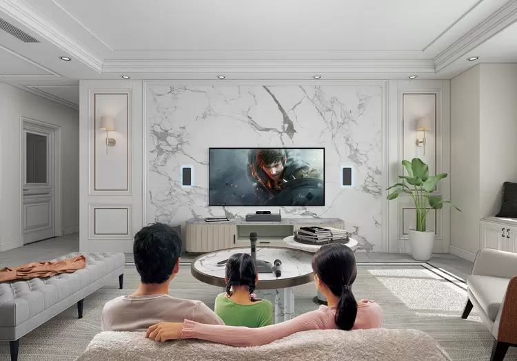 All-in-one影K娱乐中心:深度整合高清视频播放、高品质音乐播放、专业K歌、影院等系统于一体。自适应切换模式(观影/K歌/音乐/游戏/会议/游戏),彻底告别设备堆叠与线材烦恼。