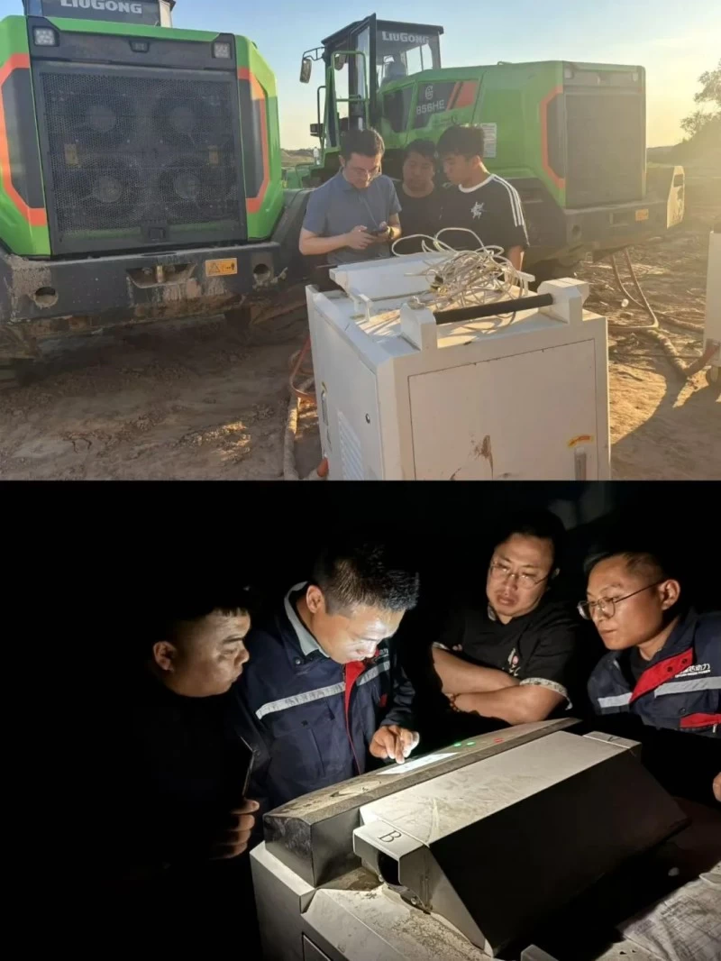 ▲启源团队扎根山西工地,从设备调试到电力适配,逐项攻克技术难点。他们持续跟进项目进展,坚守岗位,有时驻场放电至晚间十二点,确保客户所有机械完成补能。