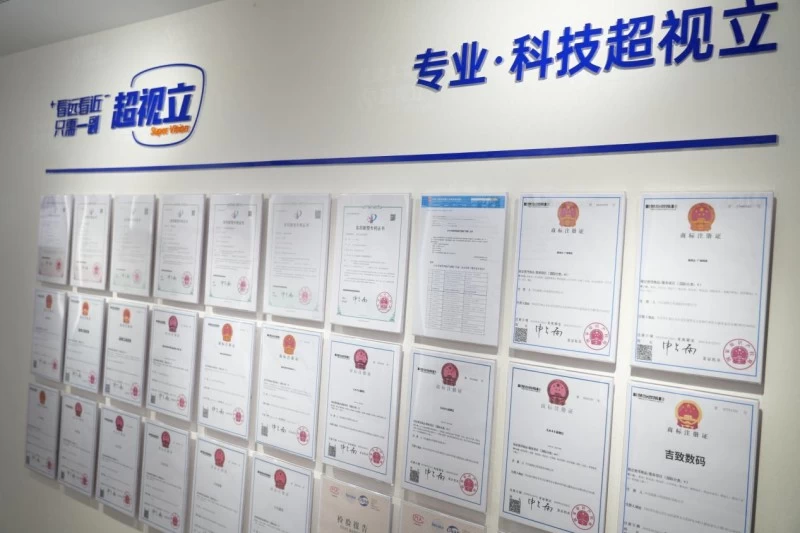 传统渐进多焦点镜片存在“像跳”“视野狭窄”等缺陷,导致用户眩晕感强、适应周期长。作为《渐变焦定配眼镜》国家标准制修订起草单位、全国眼视光标准化技术委员会第一届委员单位,超视立推出的远近一体镜让近视、老花、远视、散光等多重视力困扰一副眼镜同时搞定,看书、看手机、看电视、走路、开车、开会等不同场合,无需多副眼镜来回换戴,看远看近清晰、舒适又方便。已经提交申请注册商标160件、国际马德里商标3件、作品版权26件、发明专利4件、实用新型专利10件、外观专利9件,远高于国内同类品牌。