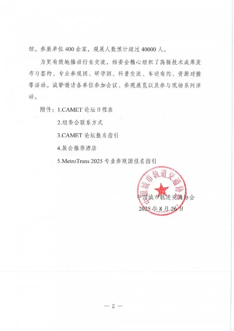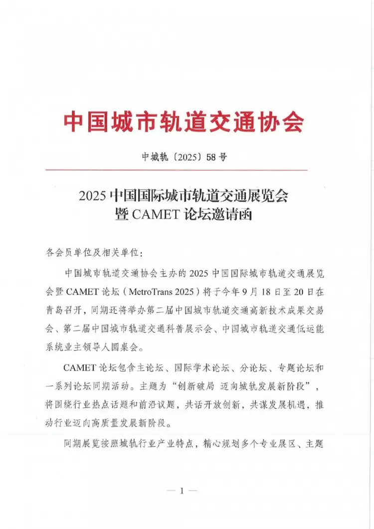 - 报名开启丨2025中国国际城市轨道交通展览会暨CAMET论坛邀请函
