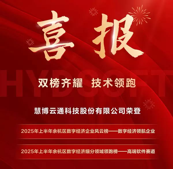 近日,杭州市“2025年上半年余杭区数字经济企业风云榜”与“2025年上半年余杭区数字经济细分领域领跑榜”正式发布。慧博云通科技股份有限公司凭借在信息技术服务领域的技术实力积淀,成功上榜两项权威榜单,充分展现了公司在区域数字经济版图中的领航实力与行业影响力。