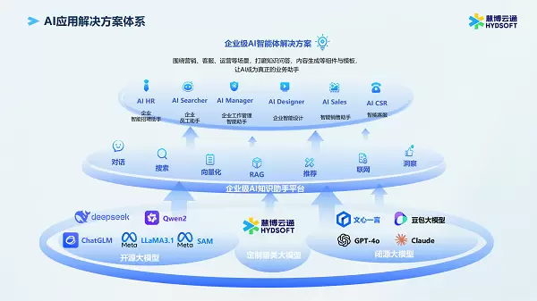 慧博云通在人工智能领域持续深耕,已形成从底层算力支撑到上层行业应用的完整的企业级AI解决方案,推出企业智能招聘助手、企业员工知识助手、企业制造设计助手、智能销售助手等应用场景,在金融、智能制造、零售等行业落地众多标杆案例,加快客户数智化转型进程。
