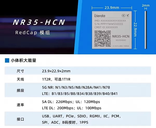 近期,头部模组厂商利尔达推出的超小型5G RedCap模组NR35系列,引发行业热议。 其将物理尺寸压缩高达40%的同时,完整保留了1T2R架构下的5G RedCap核心性能。这种“瘦身不减能”的设计哲学,为可穿戴设备释放出宝贵的空间——想象一下,智能手表内部因此可容纳更大电池,或实现更时尚纤薄的ID设计。